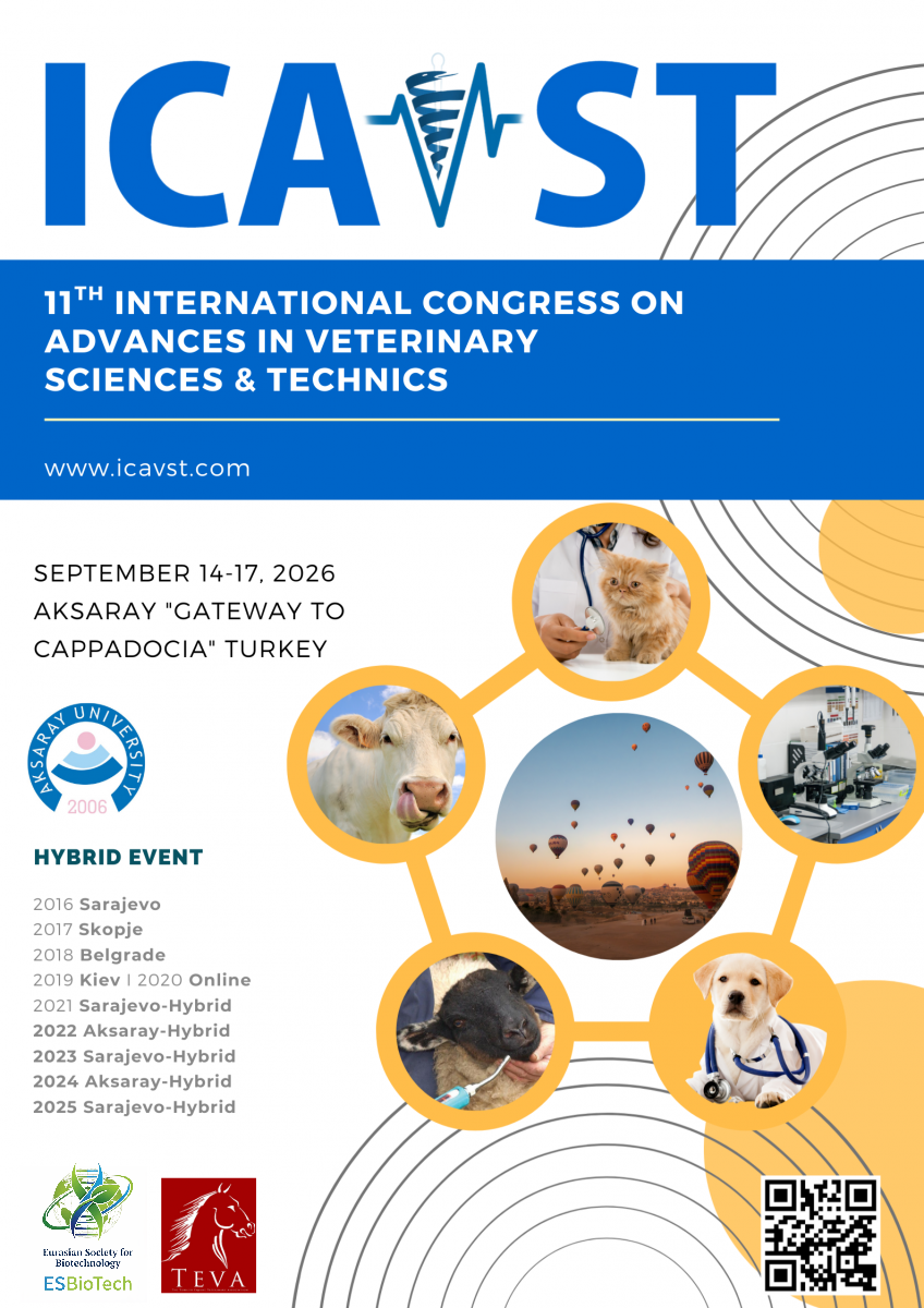 On behalf of the Eurasian Society for Biotechnology (ESBioTech), we are delighted and honored to invite you to participate in the 11th International Congress on Veterinary Sciences and Techniques (ICAVST 2026), which will be held in Aksaray, Turkey, hosted by Aksaray University, from September 14-17, 2026.